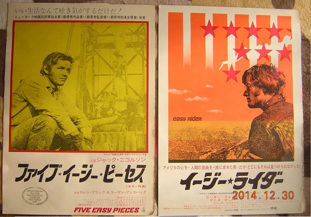 映画の方ですが、詳しくはこちらをご参照ください。アカデミー賞4部門ノミネートという秀作で、アメリカン・ニュー・シネマの代表作です。映画は、スタッフ・キャストとも1969年、つまり前年の『イージー・ライダー』の面子が入っており、題名の「イージー」からして『イージー・ライダー』を意識していると思われます。下は例によって「金沢八景シネマ」ご提供のポスターですが、このポスターを比べても何となく似ていますね。尚、この映画はキネ旬の「オールタイム・ベスト映画遺産200-外国映画編」の読者選出には入っていません。年度のベスト10では7位だったそうですが。不思議ですね。また、「ファイブ・イージー・ピーセス」の意味ですが、googleで検索するといっぱい出てきますので、興味のある方はご確認ください。あとひとつ、上の動画に出てくる女優さん(カレン・ブラック)、ソフィア・ローレンに似ていませんか?誰も言わないのが不思議なんだけど・・・。